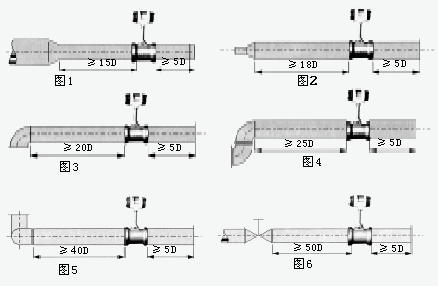 為了確保儀表正常、準(zhǔn)確運(yùn)行,傳感器安裝點(diǎn)的上下游須***有一定的直管道,以調(diào)整流場,如圖所示。