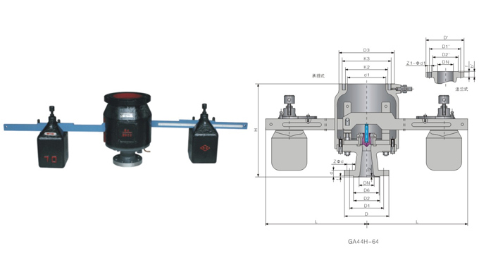 NO 零件名稱 材料 1 閥體 碳鋼Carbon 2 導(dǎo)向套 不銹鋼Stainless 3 閥瓣 2Cr13 4 閥桿 2Cr13 5 杠桿 碳鋼Carbon 6 重錘 鑄鐵Cast 型號(hào) 公稱通徑 尺寸 do-z D D1 D2 D6 f f2 b Z-?d H L 承插式 法蘭式 d1 k2 k3 D3 DN' D2' D1' D' b' f' z1-?d1 GA44H-1.6 80 50×2 200 160 135 / 3 / 20 8-18 410 840 120 145 162 190 150 210 240 280 24 3 8-23 GA44H-2.5 80 50×2 200 160 , 135 / 3 / 22 8-18 410 840 120 145 162 190 150 210 240 280 24 3 8-23 GA44H-4.0 80 50×2 200 160 135 121 3 4 22 8-18 410 840 120 145 162 190 150 210 240 280 24 3 8-23 GA44H-6.4 80 40×2 210 170 140 121 3 4 30 8-23 480 840 200 218 253 285 200 255 280 315 22 3 8-18