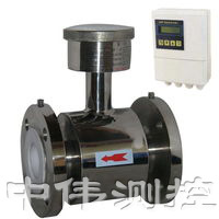 硫酸鉻流量計(jì)根據(jù)法拉第電磁感應(yīng)原理,在與測(cè)量管軸線和磁力線相垂直的管壁上安裝了一對(duì)檢測(cè)電極,當(dāng)導(dǎo)電液體沿測(cè)量管軸線運(yùn)動(dòng)時(shí),導(dǎo)電液體切割磁力線產(chǎn)生感應(yīng)電勢(shì),此感應(yīng)電勢(shì)由兩個(gè)檢測(cè)電極檢出,數(shù)值大小與流量成正比例,其值為:E=KBVD式中: