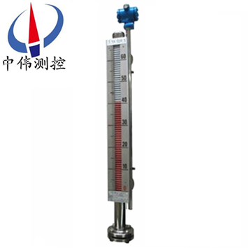 2、保溫型磁翻板液位計(jì):該液位計(jì)是在基型的主體外安裝一個(gè)保溫夾套而構(gòu)成通入蒸汽等熱媒劑??梢员3种黧w內(nèi)液體的正常流動(dòng)。因此適用于易凝固液體的液位測(cè)量和控制。對(duì)于低沸點(diǎn)液體可通入冷水等冷媒劑,以保證液位的穩(wěn)定。使儀表正確指示出被測(cè)液位。