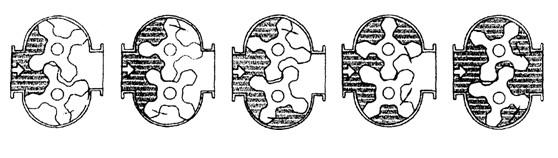 ZW-LXZ系列螺旋雙轉(zhuǎn)子流量計(jì)對流體流量的測定是在計(jì)量腔體內(nèi)完成的。一對螺旋轉(zhuǎn)子在液體的壓力下轉(zhuǎn)動,轉(zhuǎn)子與計(jì)量腔壁間形成的封閉空間(圖陰影部分)每回轉(zhuǎn)一次排出8倍陰影體積。因此根據(jù)這一關(guān)系,只要計(jì)量轉(zhuǎn)子回轉(zhuǎn)的次數(shù),即可計(jì)算出流量累積量,根據(jù)每秒的轉(zhuǎn)數(shù),即可測出瞬時(shí)流量。
